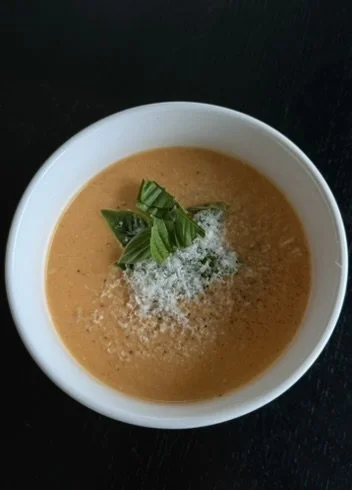 Top with fresh basil & parmesan cheese. Serve with warm bread or grilled cheeses!