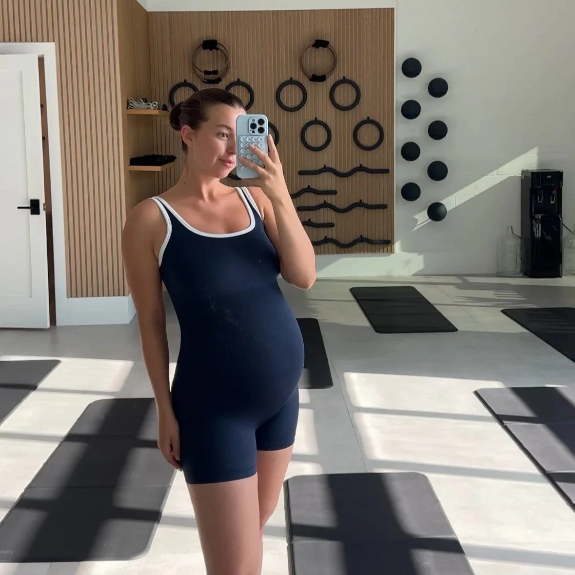 Exercise rompers and onesies. As someone who is super active, stretchy rompers and onesies have been my preferred choice of activewear during pregnancy. I did purchase a few from Amazon once I got to my third trimester, but my pre-pregnancy faves from Beyond Yoga and Strut-This still work.